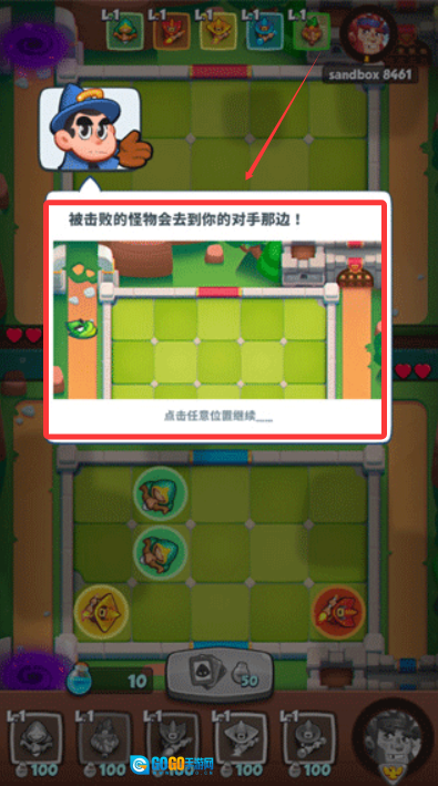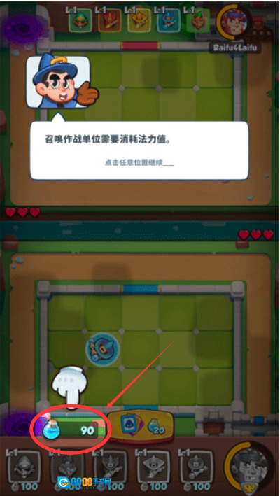 当玩家的法力值不足以完成召唤操作时,还能通过点击游戏界面下方的单位执行升级操作。