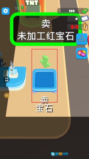 把收集到的未加工红宝石,放进【卖-未加工红宝石】的蓝色区域,为售卖换取资源做准备。
