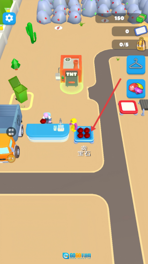 确认宝石已放置妥当后,操作运输工具或完成相关交互,将【卖-宝石】位置处的红宝石进行售卖以变现。