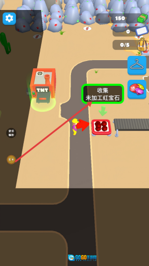 操控角色前往标有【收集-未加工红宝石】的区域,收集用于生产的原料未加工红宝石。