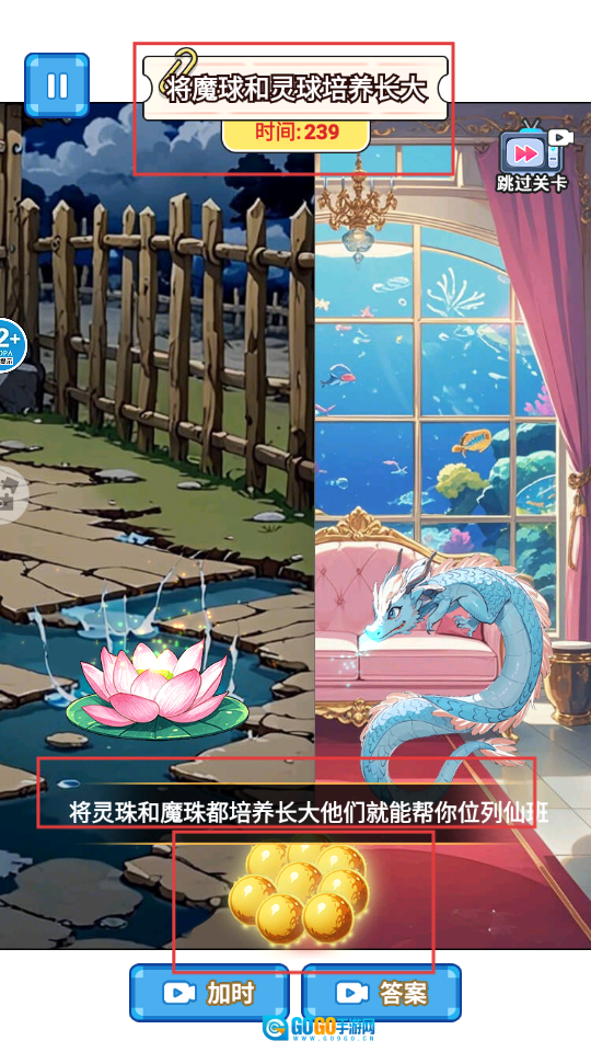 按照提示,【灵珠】和【魔珠】都得培养至成熟,要留意莲花池与龙房间这两个左右区域的培养步骤必须保持同步。