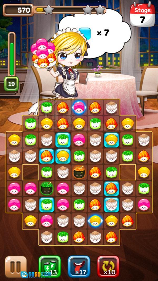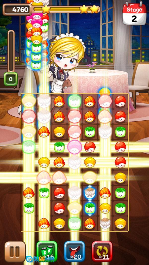 创新设计的寿司主题消除玩法,把美食元素和经典三消巧妙地结合在了一起。