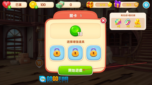 打开游戏宝贝大厦家居改造,点击【開始遊戲】按钮进入关卡。