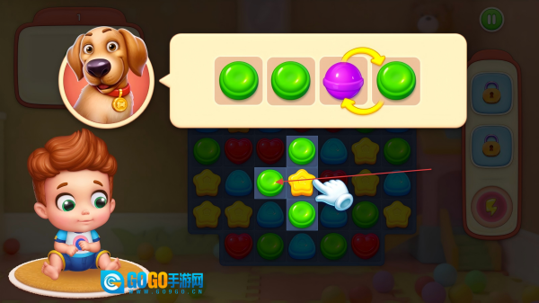 三消解锁房间:在爆破彩色糖果的三消关卡中闯关成功,即可解锁全新房间。经典的三消玩法不仅能让你放松心情,还能助力推进房间改造的进度。
