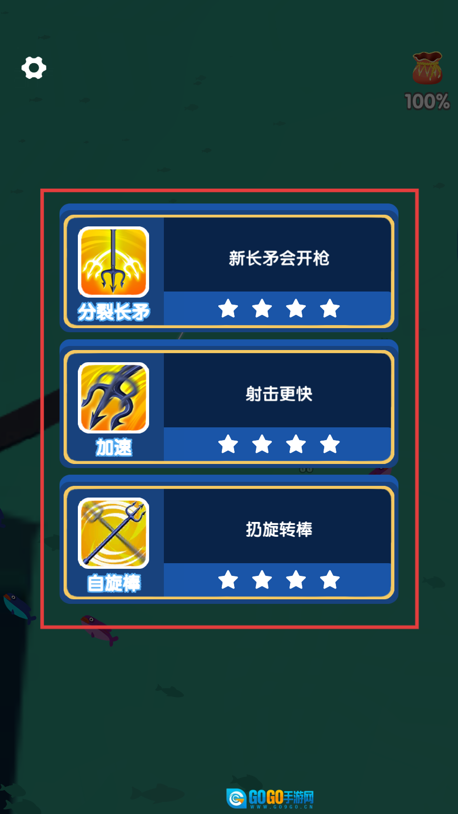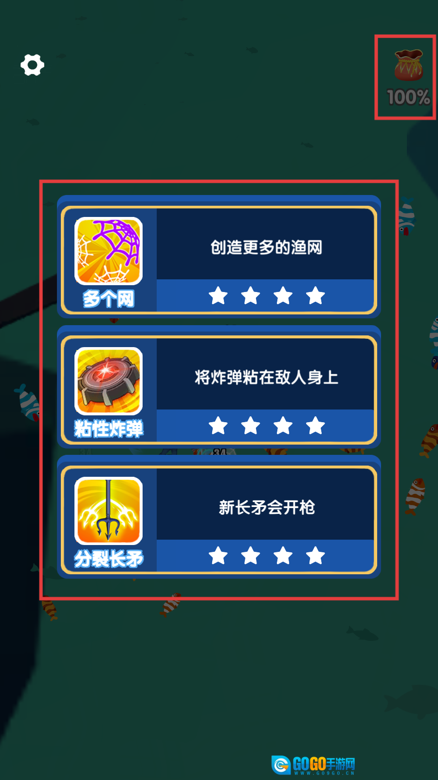 当进入技能选择界面时,可依据当下的需求,选择【分裂长矛】来增强攻击力,从而更好地帮助捕获更多鱼群。