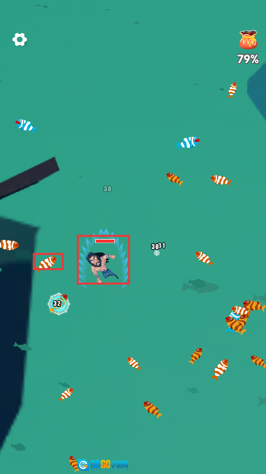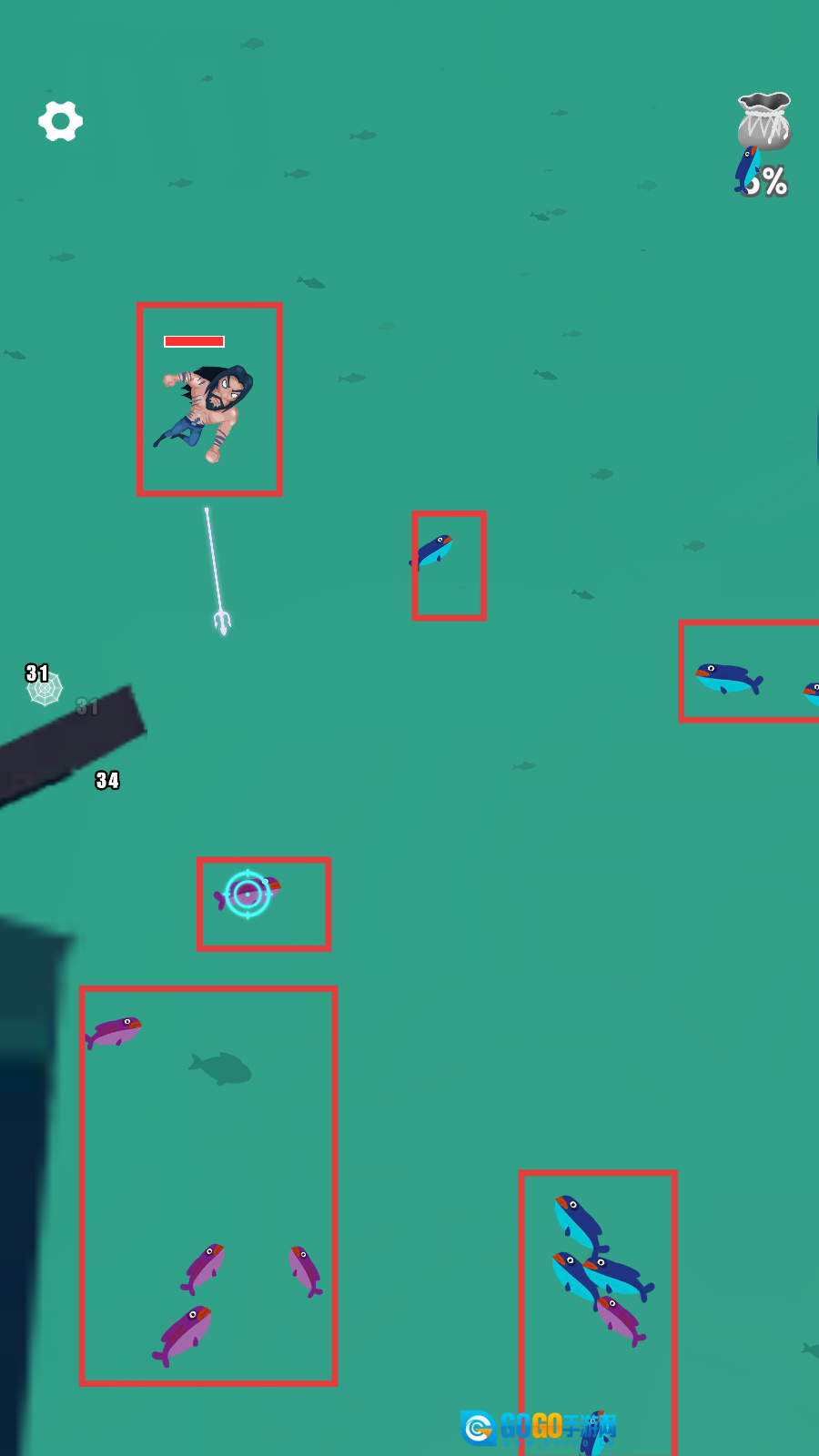 进入游戏后,你需要操控角色在海底进行狩猎。通过点击屏幕并拖动来控制方向,瞄准鱼类后发射鱼叉即可。建议优先狩猎单个小鱼,这样能更高效地积累资源哦。