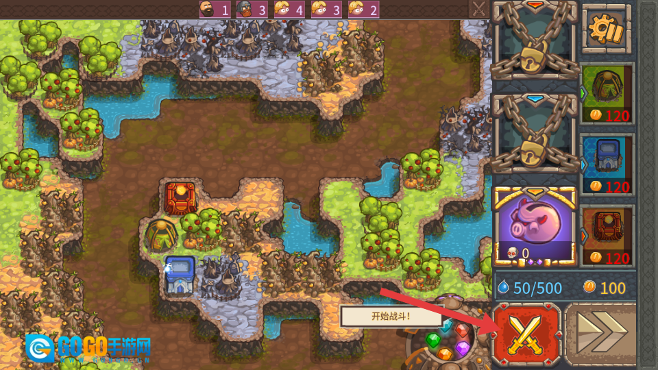 在防御建筑布置妥当后,点击界面右下角的双剑图标,即可开启战斗。