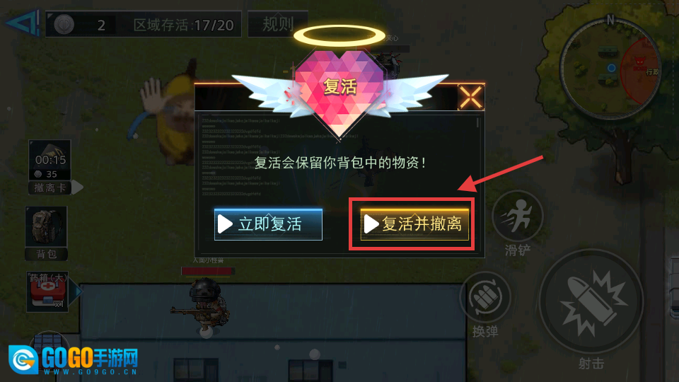 被击败后,可选择【复活并撤离】来保留物资,也能选择立即复活,具体要依据战况来决定如何延续资源。