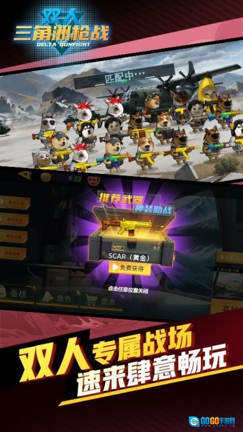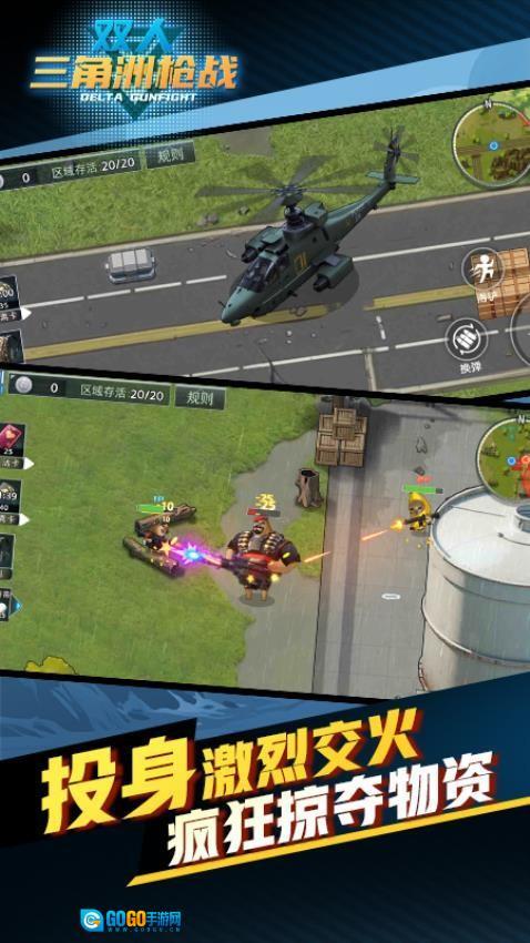 双人三角洲枪战是一款紧张刺激的多人枪战射击游戏。你将与队友一同空降至危机四伏的战场,需要迅速适应环境以寻找生存契机。你得疯狂开启宝箱,收集武器与物资,击败其他对手抢夺战利品;还需在毒圈逼近前合力撤离,同时隐藏行踪,利用暗处占据攻击优势,更能在关键区域获取限定资源并及时转移。每局仅3分钟,体验超爽快——既能正面刚枪对射,也能用臭屁炸弹、滑稽护盾等趣味道具实现逆风翻盘。活到决赛即可带走全部资源,是选择兄弟齐心还是独吞跑路?这场爆笑的掠夺之旅,等你开启!