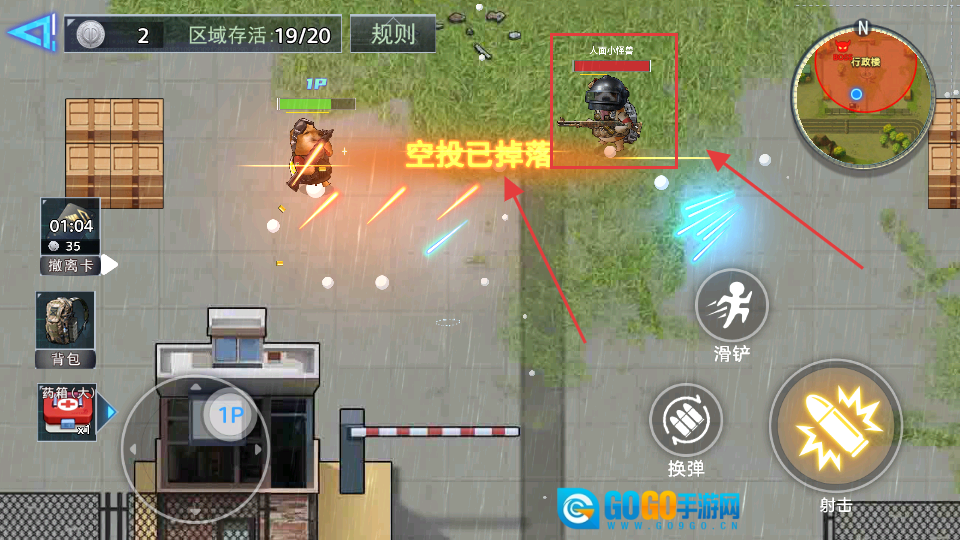 当【空投已掉落】的提示出现时,要迅速击败【人面小怪兽】夺取物资,同时留意剩余存活数量,通过灵活的战斗策略来保障资源安全。