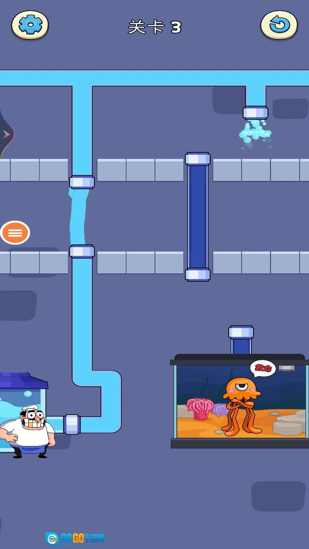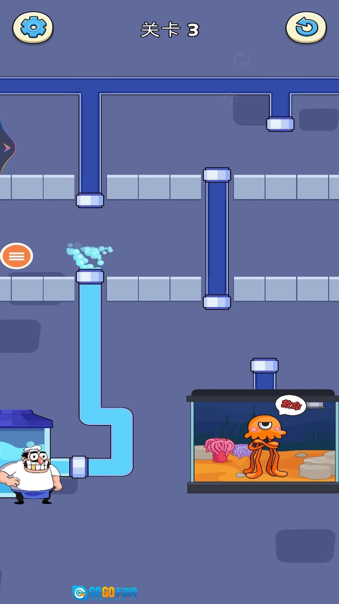 点击【开始】按钮,进入游戏界面,开启管道连接的挑战关卡,解救那些被困住的生物。