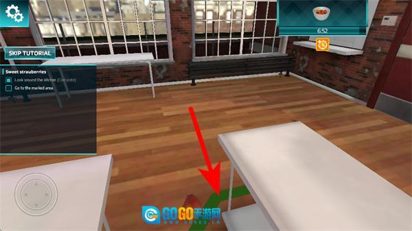 2、在职业模式的厨房场景中,操作移动按钮,前往指定的标记区域。