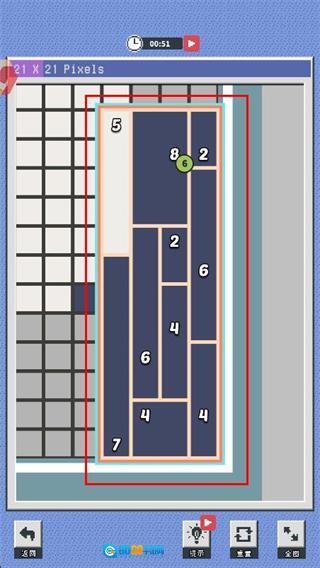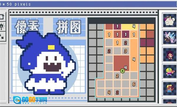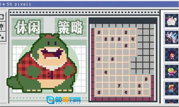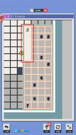 1. 关卡选择:在按字母分类的关卡列表里挑选关卡,进入相应的像素网格场景,网格旁边会有数字提示标注。