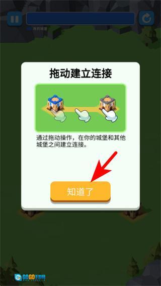 2、点击“知道了”按钮关闭提示弹窗,这是熟悉游戏规则的基础操作,关闭后能清晰查看游戏界面,进而开启城堡连接的核心操作。