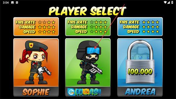 2、进入角色选择界面后,可挑选已解锁的角色(例如LUCAS),该角色的属性涵盖FIRERATE、DAMAGE、SPEED等能力维度。