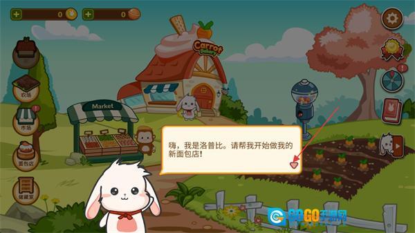 进入游戏主界面后,能看到农场之类的功能建筑,按照洛普比的要求进行互动,就能启动CarrotBakery的面包店经营流程。