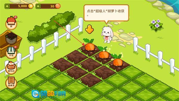 3、在游戏的农场区域,依据界面提示点击该作物,就能完成超人胡萝卜的采收并得到相应资源。