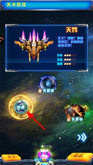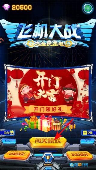 1、在游戏主界面点击闯关模式按钮,这是进入飞机大战关卡挑战的关键步骤,点击后将开启关卡选择流程,开启空战冒险的核心体验。