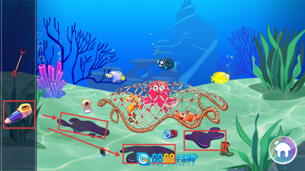在清洁环境的模式下,我们先用道具吸走脏污,守护环境,让海底焕然一新。