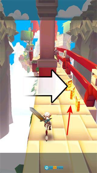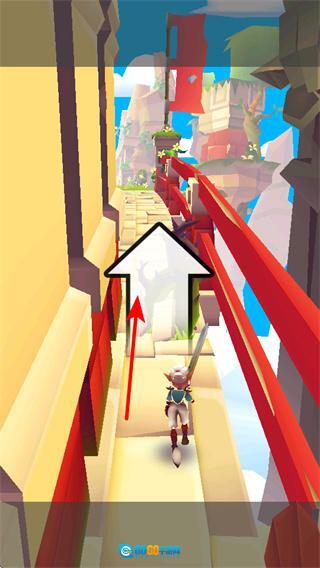 4、通过方向操控让角色向上移动,跨越路径上的地形变化,这是适应跑酷场景的关键操作,持续调整移动方向能帮助角色顺利通过复杂路段,完成挑战。