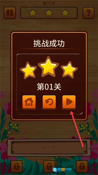 完成关卡消除目标后,会触发【挑战成功】的提示,此时点击【播放按钮】即可进入下一关。