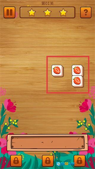 进入【第01关】,仔细观察网格里的【水果方块】,找出图案相同的方块,为消除操作做准备。