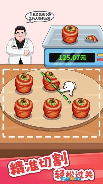 核心玩法聚焦于精准切割操作,玩家要依据顾客的具体需求,把物品分割成规定的重量规格或是特定的形状样式。