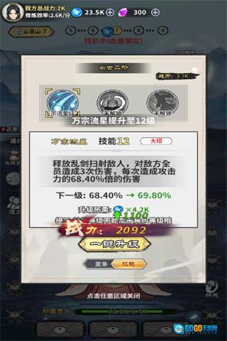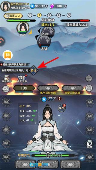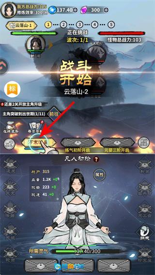 1、在关卡界面点击对应的战斗触发区域,是进入修真战斗关卡的关键操作,点击后将开启云落山的战斗流程,开启修仙冒险的核心体验。