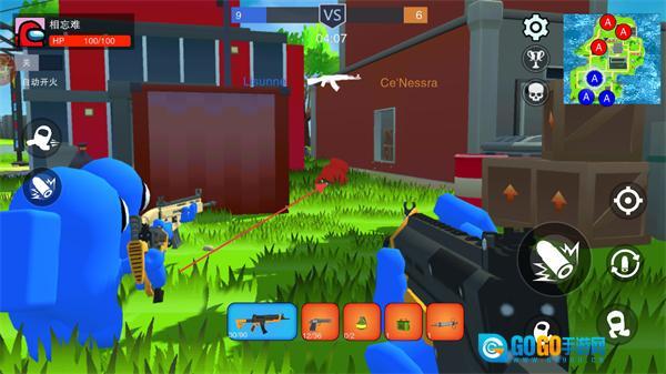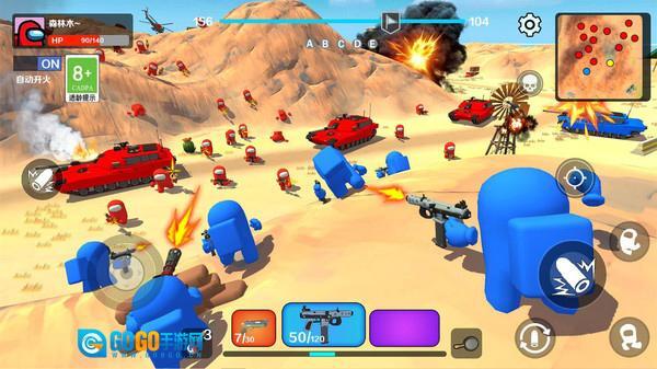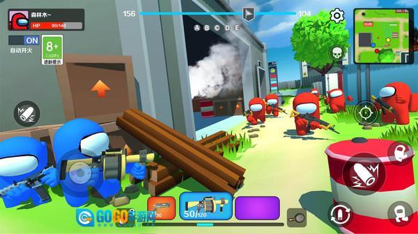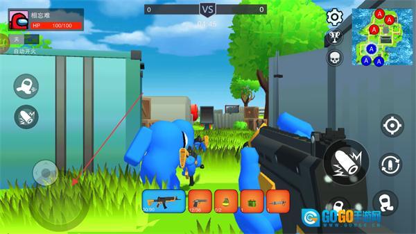 2、进入战场后,控制角色移动,点击开火按钮攻击敌方小人,积累击杀数量。