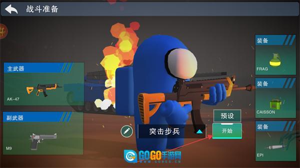 1、在战斗准备界面,挑选主武器(像AK-47这类)、副武器(例如M9)以及各类装备,点击开始按钮即可进入对战环节。