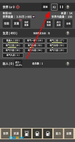3、对游戏世界的倍数进行调整,以此提升收益获取的效率,同时留意生灵数量的变动情况;随着年份的逐步推进,解锁境界更高的生灵类型。