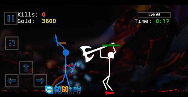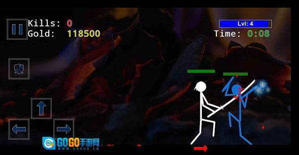 2、点击左侧的拳头按钮,能够操控角色进行出拳攻击,以此对敌人造成伤害,同时积累击杀数量与金币。