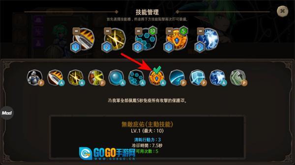 在技能管理界面挑选技能来进行装备,装备过程中要留意技能所具备的效果,像免疫伤害这类,通过合理搭配技能能够增强战斗能力。