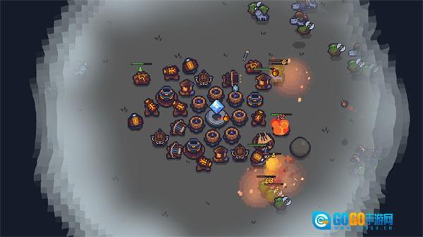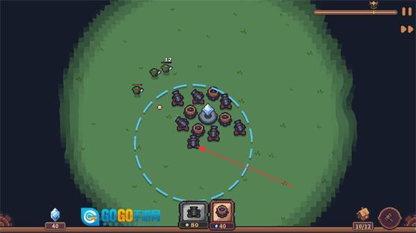 3、在晶石周围布置建筑设施,借助这些建筑抵御兽人,注意设施的攻击范围只有篮圈位置,我们需要保障晶石资源安全推进关卡。