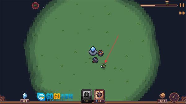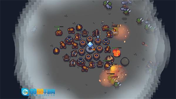 4、进入关卡后,可利用初始资源建造下方建筑,借助建筑抵御兽人敌人,同时收集场景中的晶石资源升级建筑。