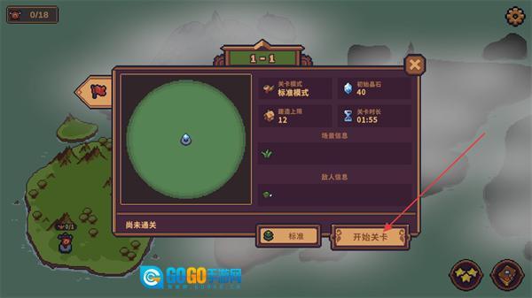 3、在1-1关卡的信息面板中,选择游戏难度后点击开始关卡按钮,即可进入该关卡的实际游玩环节。