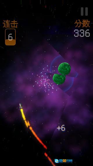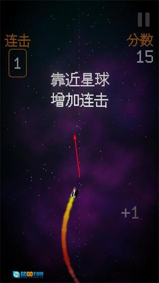 2、控制飞船逐步靠近星球,以此提升连击数,与此同时密切关注界面上显示的连击情况与分数变动,不断推动游戏向前进行。