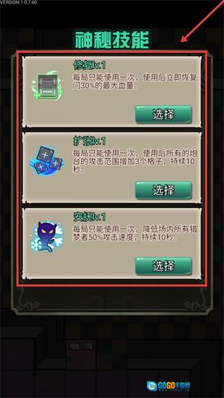 对局开始前,你可以从【修复】【扩张】等神秘技能里挑选一个,通过合理搭配这些技能,能够增强在对局中的生存与防御能力。