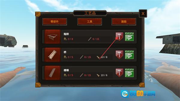 3、切换至工艺品的建筑标签页,查看陷阱所需的材料条件,等材料齐备后点击相应按钮制作建筑类物品。