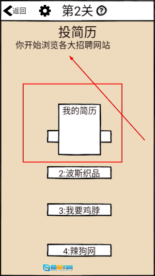 在关卡选择界面找到并点击标有【2】的关卡按钮,即可进入对应的投简历关卡,随后开始处理该关卡的任务流程。