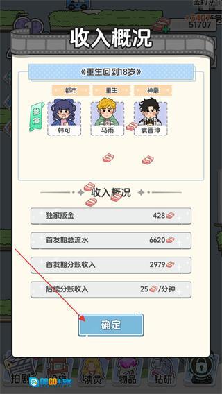 4、在查看完重生回到18岁剧本的收入概况数据后,点击界面上的确定按钮,就能关闭这个收入界面了。