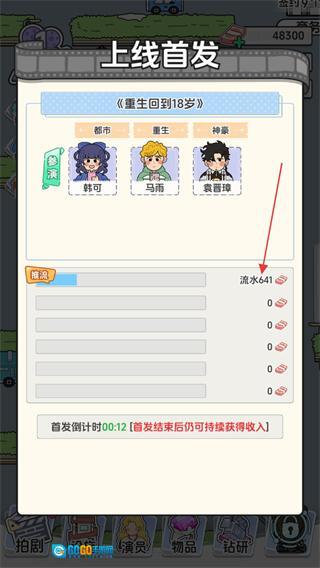 3、在上线首发界面,能查看重生回到18岁相关的流水数据,等首发倒计时结束后就能持续获得收入。