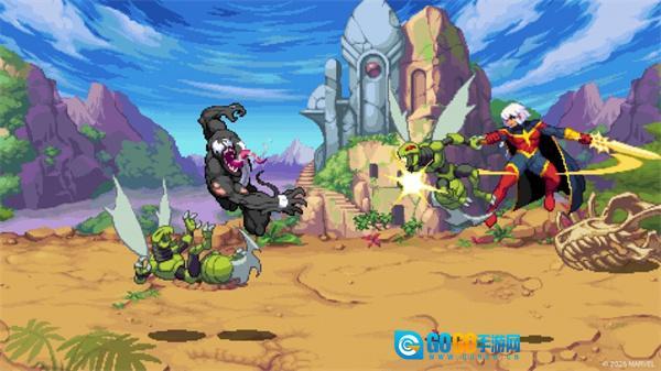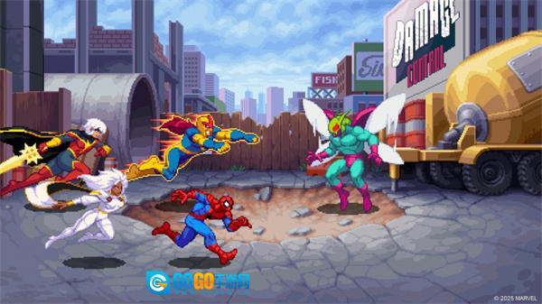游戏采用全彩像素艺术风格打造,角色设计上对90年代漫威漫画致以敬意。动作帧数表现细腻,像蜘蛛侠的摆荡动作与蛛网发射时的流畅轨迹,都精准还原出经典漫画的质感。