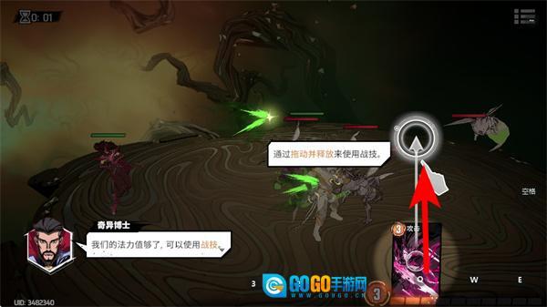 2、根据提示滑动技能卡片是触发技能的基础操作,通过滑动可激活技能效果,利用技能的范围或单体伤害来提高战斗的输出效率。
