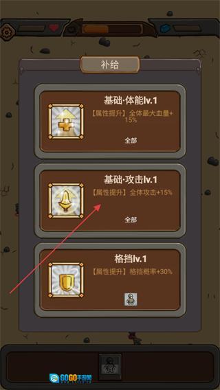 1、在补给界面选择基础·攻击lv.1,可为全队增加15%的攻击属性,从而提升作战输出能力。