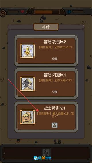 3、再次打开补给界面,选择基础·攻击lv.2,将攻击属性升级到25%,以此增强部队的战斗力。