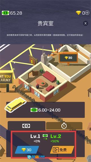点击标有【FREE】的建筑区域,进入【贵宾室】界面后,就能解锁该建筑对应的功能。