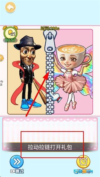 1、进入关卡后,拉动拉链开启礼包,从中拆分出角色的各类元素部件。