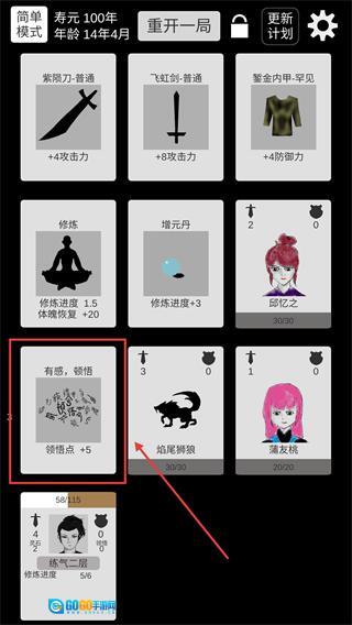 通过使用【有感,顿悟】卡片来获取领悟点,当领悟点积累到一定程度后,就能解锁更强大的武技或者符箓,进而提升角色的战斗力、防御力等各项属性。