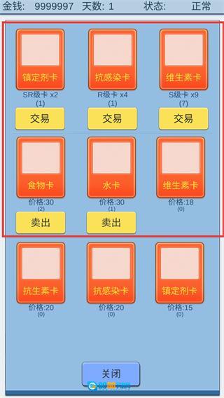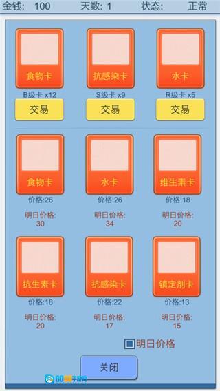 进入【交易】界面查看卡片价格,把多余的【食物卡】【水卡】卖掉换成金钱,或者通过交易稀缺资源来优化资源配置,这样能帮助通关。